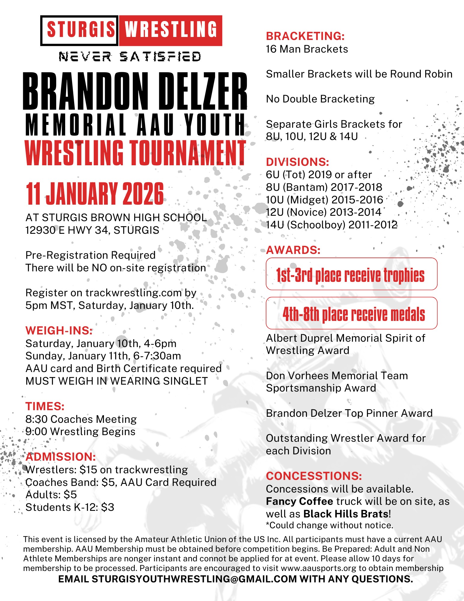 Sturgis Brandon Delzer Tournament (AAU) Sturgis Brown High School 12901 SD Hwy 34 Sturgis, SD |